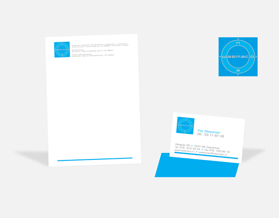 De nieuwe huisstijl van Wasmaco BV, een scheepvaartsbedrijf in Zwijndrecht. Door de letters W en O aan het begin en einde van de naam ben ik op het idee gekomen om een kompas met de vier windrichtingen te gebruiken in het logo.